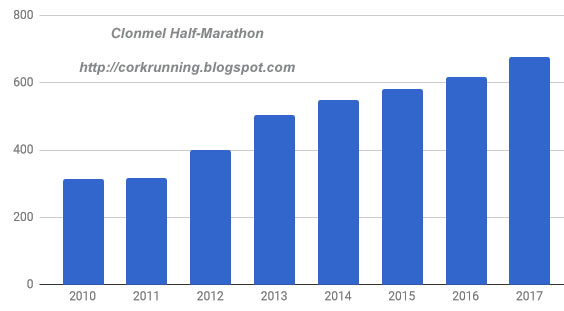 This race is organised by Clonmel AC and they have grown it slowly but surely over the years. Here is a statement from Niall O'Sullivan of the club..."We are excited to announce the Boston Scientific Marathon is a sell out, with a grand total of 800 entrants! Registration is now officially closed, with no further entries taken online or on the weekend of the race!"